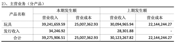 小白龙收入来源主要是玩具,收入3924.17万元,发行也会带来很小一部分收入,上半年,这部分收入为3.42万元。