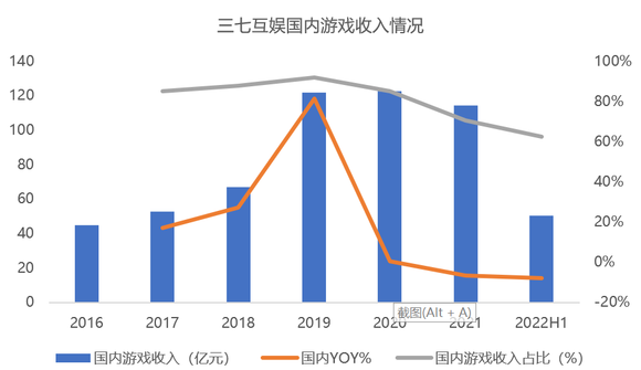 三七互娱国内业务营收再次出现下滑,上半年国内收入50.59亿元,同比下降7.91%。国内收入占总营收的比重降至60%左右。