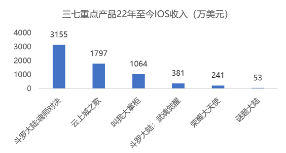 从收入表现来看,三七互娱收入主力依然是《斗罗大陆:魂师对决》、《云上城之歌》以及《叫我大掌柜》。