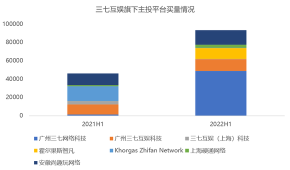 从期间费用来看,三七互娱销售费用、管理费用均有所下滑。三七互娱上半年销售费用达43.4亿元,同比下滑9.31%,其中互联网流量费用约40.91亿元(上年同期46.39亿元)。