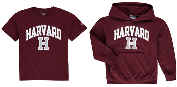 Champion 与哈佛大学的联名款是广受好评的经典。该系列以连帽衫、T恤为主,不仅在哈佛大学校内 书店出售,大众也可以通过学校官方网店购买。该系列以哈佛大学的校色深红色(crimson)为底色,胸口印着学校 logo “HARVARD”以及单个“H”字母,而 Champion 品牌标识只出现在后领口和袖口处。