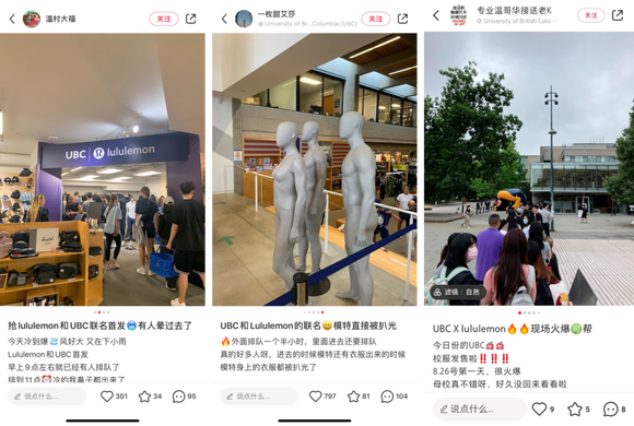 8月26日,加拿大瑜伽运动服零售商lululemon(露露乐蒙)和英属哥伦比亚大学(University of British Columbia,“UBC”)的联名款在校内商店正式发售。发售当天,商店外排起长龙,店内人头攒动,多款产品被抢购一空。如此“盛况”在社交媒体上也引起了不小的关注。