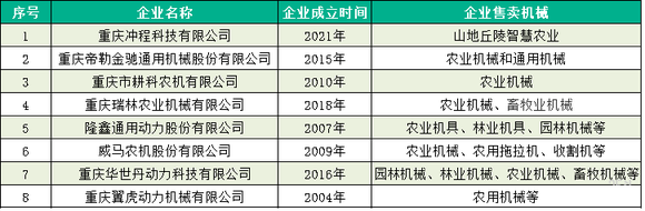 图:重庆部分从事农机机械化的企业,数据来源:据公开资料收集