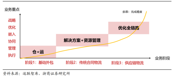 浙商证券将第三方物流发展分为三阶段: