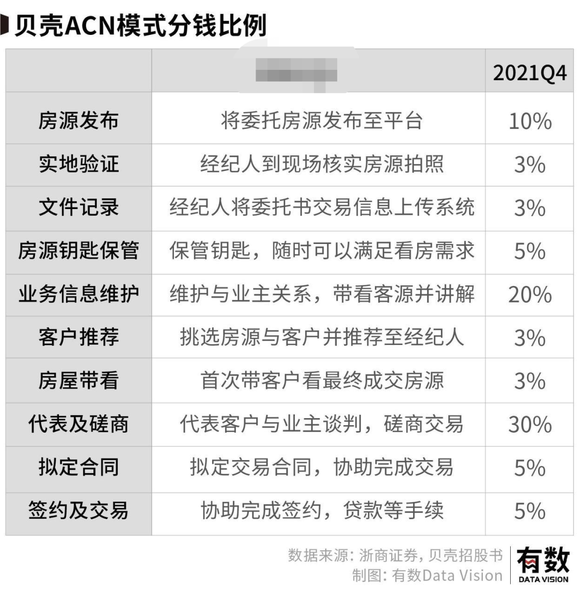最简单理解这个机制,其实就是制定了一套流程拆解方案,让每个“有贡献的中间商”都有动力参与进来,按照贝壳的标准化分佣模式一起玩。