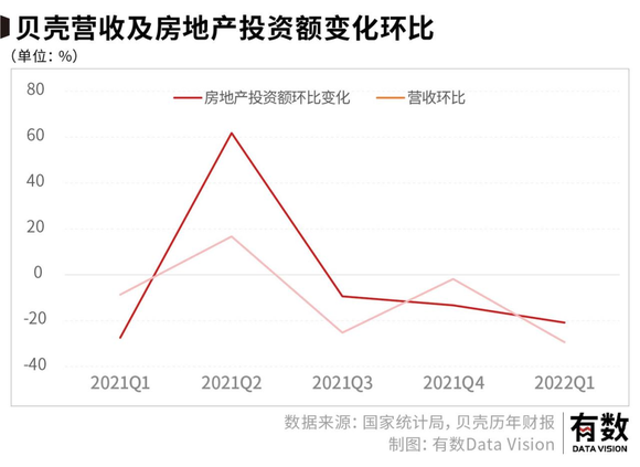 随之而来的,则是房地产投资额和贝壳营收一同断崖式下跌。