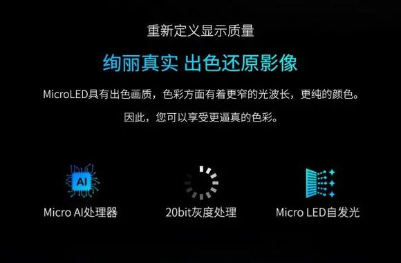 可能有些读者还不理解搭载Micro LED技术的电视与我们日常使用的传统电视有多大差距,这里我也简单做一个小小的科普。作为最新一代的顶级显示技术,Micro LED技术主要拥有高效率、高亮度、反应速度快、节能、体积小、轻薄、寿命长等优势,除此之外,在超高解析度的加持下能够拥有更加准确的色彩调试。