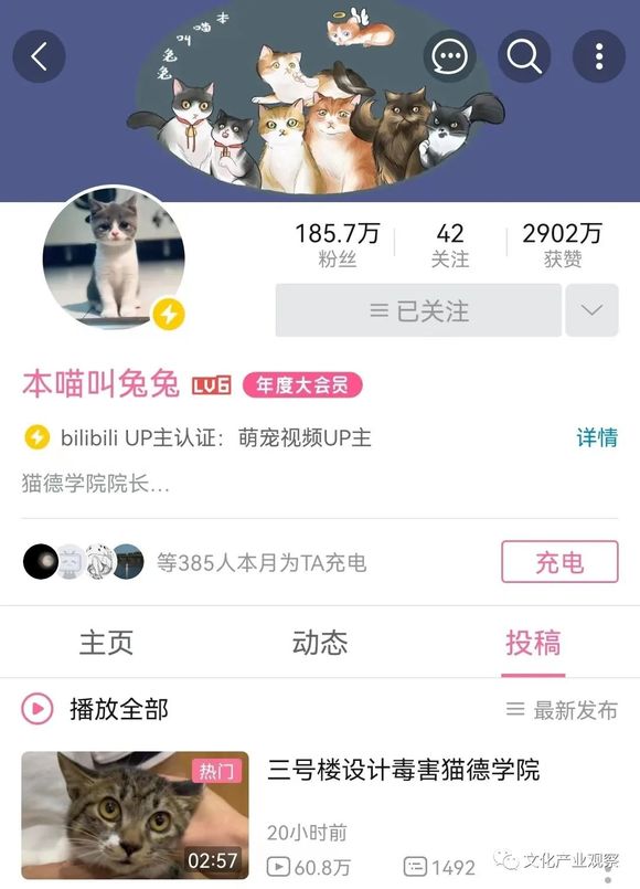 2020年11月,一个名为“本喵叫兔兔”的up主在b站走红,他凭借极具特色的山东口音和诙谐幽默的文案,用一句“今天我们又来绑架小猫啦”迅速走红网络,使“绑架代替购买”成为了流浪猫救助中的一句“著名口号”。还极具有创造力地开发了“猫德学院”“三号楼”等流行词汇,被网友亲切地称为“兔兔爹”。