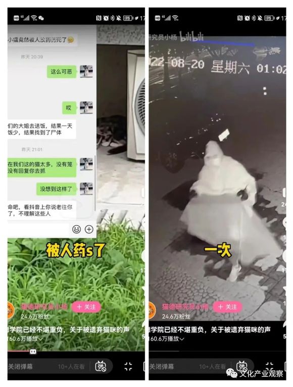 兔兔爹的团队疲于照顾这些被遗弃的宠物猫,没有时间去施行他们的初心,导致有一窝原本有机会进入合适人类家庭的小猫咪被人药死。更是有甚者,在猫德动物医院的工作人员,up主猫德研究员小杨在前面的视频说完有很多人故意遗弃猫咪,要挂着医院门口的监控直播之后,有一名身着雨衣的蒙面男子把装着4只猫的笼子放在了监控的四角,其中有两只母猫都怀孕了。