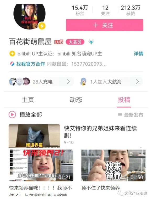 无独有偶,b站的另一个up主百花街萌鼠屋。原本是一个以拍摄自己宠物店内的仓鼠为主要内容的萌宠up主,却因为店门口被人接连遗弃猫咪开始“被迫养猫”,目前在b站上“被迫养猫”的系列视频已经更到了41期。被迫收养的宠物也从猫一路拓展到了猪和狗,仓鼠店活生生地变成了“动物园”。