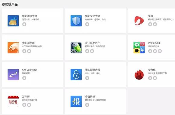 猎豹移动在自己官网的定位是——全球领先的移动工具开发商、移动互联网安全公司。查看公司官网公布的产品,也可以看到,猎豹公司的热门应用也都是安全及工具类产品。但现实情况确是:猎豹移动遭遇了用户增长和原有变现方式的瓶颈。