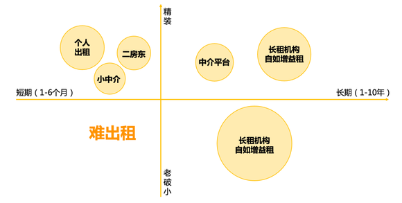 贝壳的省心租,正好是摸着自如十年的经验进入这一市场,并且选择了市场上出租情况相对较好的精装整租房源,既能发挥贝壳平台流量大效率高的特点,又有链家门店渗透社区、业主关系深厚的优势,主要满足这部分业主对省心的强烈需求。贝壳不做深度改造升级的战略,在一定程度上也实现了与自如的差异化错位竞争,避免了兄弟阋墙。