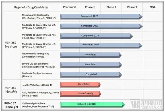 RGN-259为公司的首要开发项目,是一种基于Tβ4的无菌且无防腐剂滴眼液,可治疗干眼病(DED)和神经营养性角膜炎(NK)。