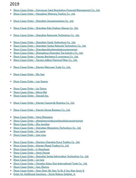 另据USPTO官方披露的文书内容,涉事中国公司一旦答辩失败,将受到若干制裁措施: