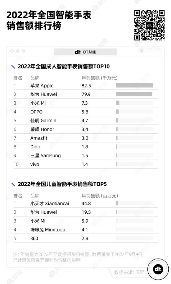 换手机的人越来越少,导致智能手机市场持续走低。但另一面,智能手表的市场不断扩张。Counterpoint 数据显示,2022年第二季度全球智能手表出货量同比增长了13%,而在中国,智能手表销量同比增长了48%。