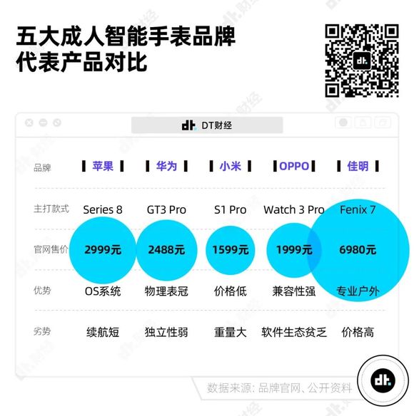 但每个品牌的竞争优势不尽相同。比如今年苹果试图用Ultra打入户外专业手表的领域,却不被很多人看好。因为以GPS起家的品牌佳明(Garmin)在这个分区有天然优势: