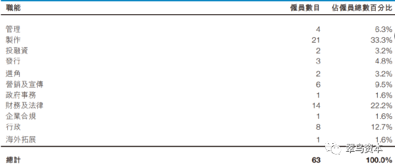 在人员安排中,财务及法律团队仅次于制作团队,且行政人员8人比发行、营销宣传部门都多。
