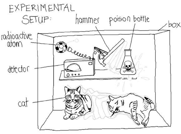 这一波函数的存在,也意味着微观系统既可以根据波函数叠加,也在波函数坍缩之前拥有不确定的多个状态。这一不确定的随机性也被爱因斯坦视为上帝创世时不可能犯下的错误,即上帝不掷骰子。奥地利物理学家薛定谔(1887年—1961年)在这一基础上也构思出了知名的思想实验——既死又活的薛定谔的猫。