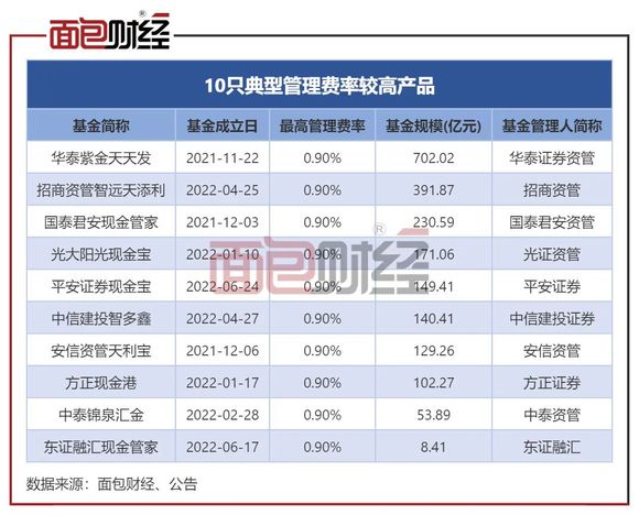 根据中报数据统计,目前有超过20只货币市场基金采取“浮动费率”制,其中至少有10只货基的最高一档管理费率为0.9%,并列第一名。