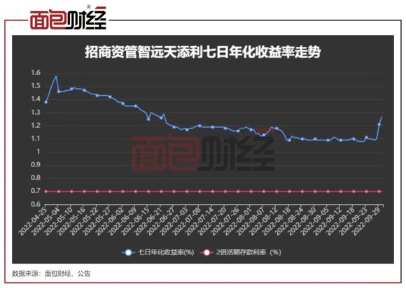 根据2022年半年报,招商资管旗下的一只货币市场基金——“招商资管智远天添利”向投资者实际收取的管理费率达到0.9%,在同类基金中位居最高一档。但是,该产品给投资者的回报率在同类中垫底,转型以来年化回报率仅约1.26%。