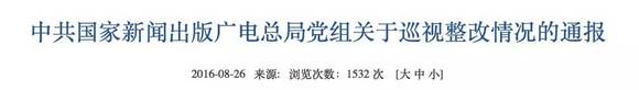 8月26日,国家新闻出版广电总局党组在中央纪委监察部网站公示了《中共国家新闻出版广电总局党组关于巡视整改情况的通报》,通报指出,广电总局即将召开广播电视节目创新工作座谈会,加强对电视剧播出的调控。