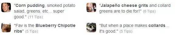 12 Bones Smokehouse奥马巴夫妇来过的店!这家的菜品非常多,除了肉类以外,还有玉米面包、蔬菜色拉、玉米布丁。都是非常的有名。最最最最让顾客流连忘返的是他们家的蓝莓辣椒酱,堪称完美,不论配肉还是沾面包都是一级棒!