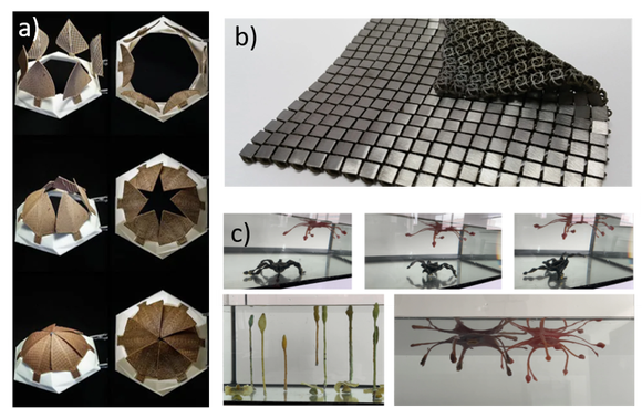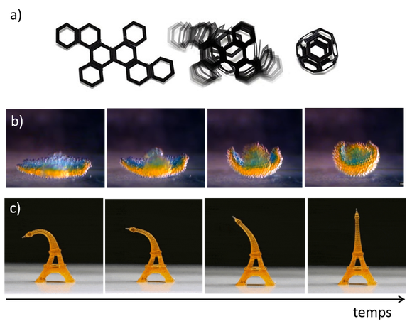 c) 利用形状记忆高分子材料和4D打印制作的“温度敏感埃菲尔塔”模型,图源Scientific Reports 期刊[6]