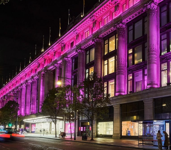 上图:Valentino 的粉红已经蔓延至全球。品牌位于巴黎圣-奥诺雷街Rue Saint-Honoré 和伦敦邦德街Bond Street的精品店外墙都被全面“粉”饰;多家精品百货商店亦为Valentino Pink PP助力,包括米兰时尚名所Antonia、伦敦高档百货商店Selfridges、纽约奢侈品百货商店Saks Fifth Avenue 等。