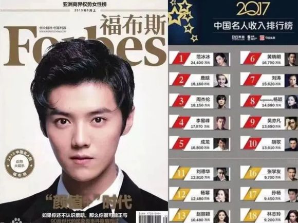 2016年的鹿晗如日中天。风华秋实为鹿晗举办了三场演唱会,曾创下32秒售空的记录,初次尝到了流量粉丝经济的甜头。据福布斯的统计,2017年鹿晗以1.8亿元的收入,一跃成为中国名人榜第二,仅次于2.4亿收入的范姓女艺人。