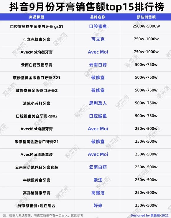 近期,聚美丽在抖音牙膏销售榜单发现,除了部分耳熟能详的品牌之外,出现了不少“新面孔”。