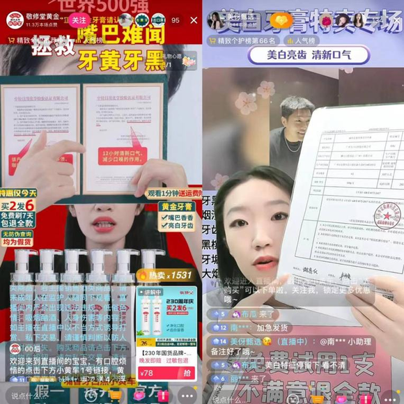抖音直播间里,无数大大小小的主播不遗余力地“吹捧”着这些月销百万的牙膏。