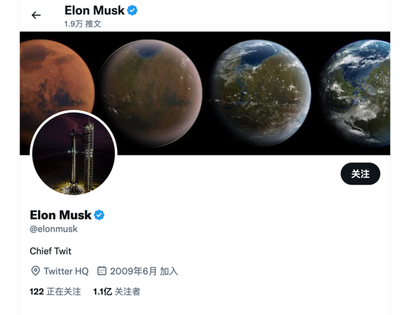 马斯克把自己的推特简介也改成了Chef Twit,一语双关“推特老板”与“首席大蠢瓜”,还把自己的定位改为了推特总部大楼,正式宣布自己入主推特。