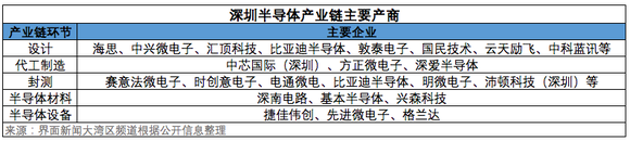 半导体产业链主要分为设计、制造、封装测试三个环节。深圳在芯片设计环节居于龙头地位,拥有包括华为海思、中兴微电子以及汇顶科技在内的众多明星公司,但在芯片制造、封装测试方面则缺乏竞争力。