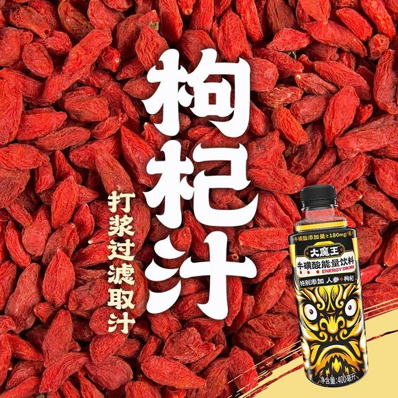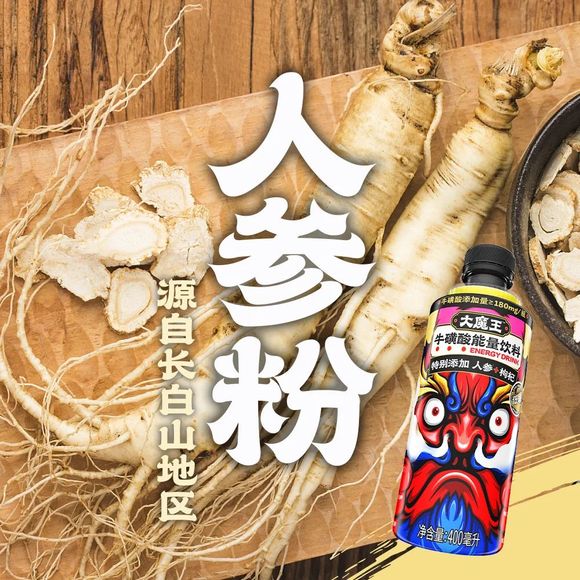 而面对能量饮料竞争已经异常激烈的现实,大魔王希望能从用户视角出发,比如除了牛磺酸之外,还在产品中加入了人参、枸杞等传统滋补成分,同时采用0苯甲酸钠、0柠檬黄和天然咖啡因提取物的配方。