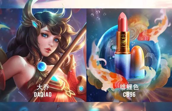 2019年,《王者荣耀》联合MAC生产了一批以游戏角色命名的口红,比如阿离色、貂蝉色、露娜色、木兰色、大乔色,请来当时刚成团不久的火箭少女,分别为不同款产品做推广,瞬间点燃全网,多款产品一度卖到脱销。