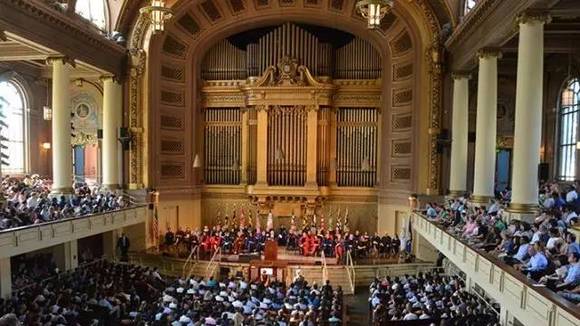 吃瓜群众们可不要以为是老干部乐团广场表演,这是耶鲁刚刚结束的开学迎新活动,唱歌的正是耶鲁最大的校领导Peter Salovey总统。耶鲁每年的迎新传统就是校领导友情参演,带你逛校园。先是在恢弘的Woolsey Hall举行隆重的开学典礼,紧接着就是总统与校长开的欢迎会,新生们可以一起和校长吃着杯子蛋糕聊着天,高兴了校领导就高歌一曲~真是可爱的校领导们。