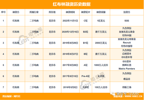 据网经社“电数宝”(DATA.100EC.CN)电商大数据监测数据显示,截至目前,红布林已先后获得7轮融资,融资总金额超11亿元人民币,而本轮融资也是循环时尚行业单笔最大规模融资。红布林前六轮融资,背后的资方包括 IDG、尚高、九合、经纬中国、启明创投、险峰等顶级知名机构,并且几乎每轮新融资,都会获得老股东的持续加码。