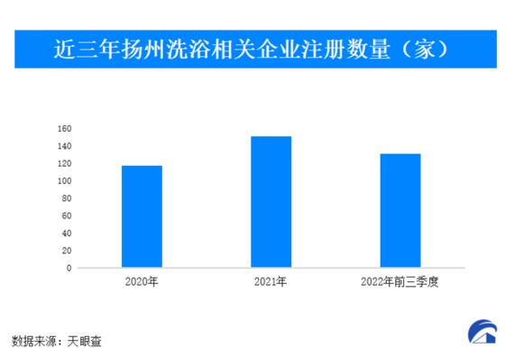 复工复产,以及政府推出的商家复苏优惠政策,让扬州的洗浴生意再度红火起来。天眼查数据显示,目前扬州洗浴相关企业数量为1950余家。其中,集中在2022年前三季度注册的洗浴相关企业数量,已经达到2020年全年洗浴相关企业注册总量的1.1倍,预计2022年将迎来疫情后的企业注册新峰值。