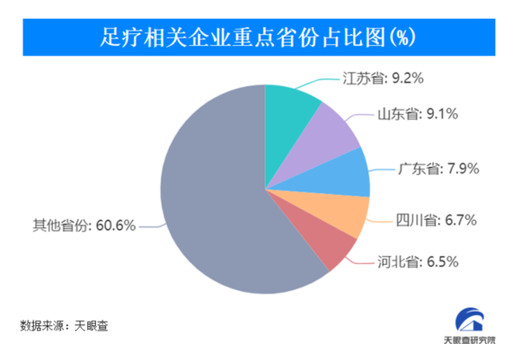 天眼查数据显示,目前我国约有110万余家足疗相关企业。江苏、山东、广东、四川、河北是全国排名前五的足疗大省,五省内足疗相关企业占比全国足疗相关企业总量近4成。江苏和山东一马当先,省内足疗相关企业均超过10万家。