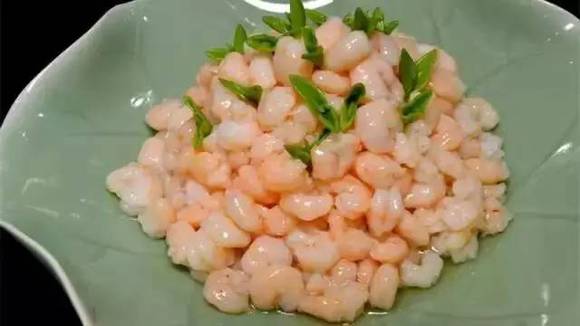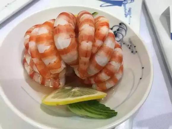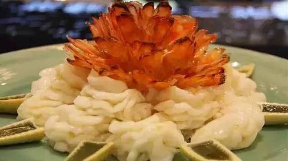 食材选用深海对虾,去壳,用牡丹花刀切成的虾肉,造型独特。