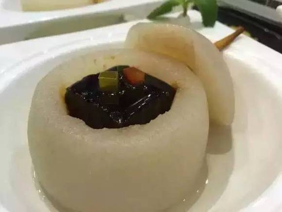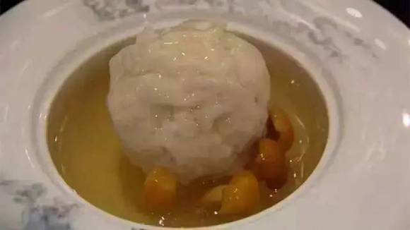 深海银鳕鱼去骨去皮,经过腌制,切成丁,打成糊状特制而成,“狮子头”就是由银鳕鱼做成,尤其是汤汁,味道十分鲜美,营养价值很高。