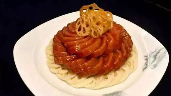 主要由金华火腿做成,其色泽火红,卤汁透明,令人回味。