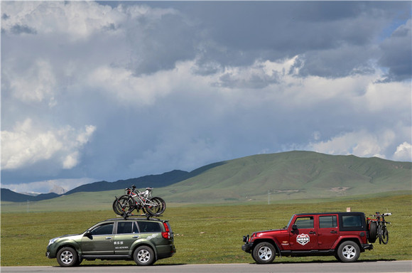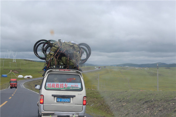 所谓“两栖”骑游,即在出行时为一行骑友配置保姆车或者保障车,配备一个司机、一个机械师、一个领队。领队对线路和随时产生的危险都很熟悉。在不合适骑行的地点,骑友可以上车。