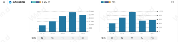 截至目前,2022年申万宏源承销债券数量571只,承销债券金额为2429.6亿元,有望向3000亿俱乐部冲击。