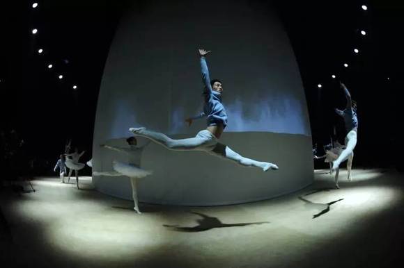 身着鄂尔多斯1980经典羊绒服饰的芭蕾舞者在环形舞台上轻盈起舞,传递的是爱、美、时光。