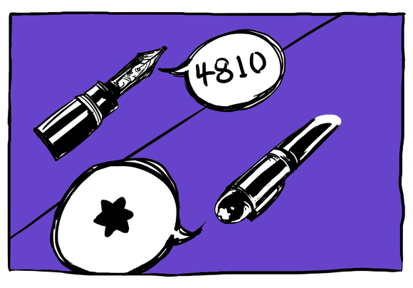 万宝龙笔顶上的六角白星标记,是欧洲最高的峰勃朗峰俯瞰的形状,而每支笔尖上的“4810”字样正是勃朗峰的高度。
