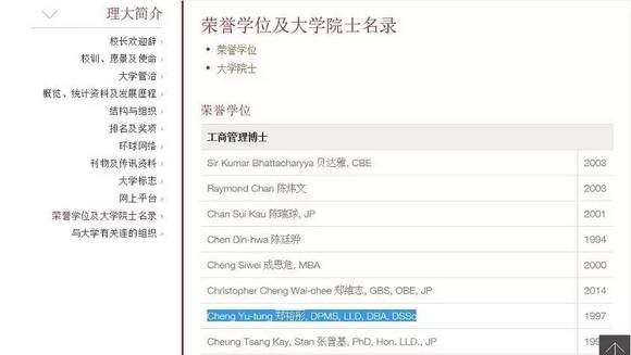 再比如91岁的郑裕彤,周大福集团名誉主席,有香港理工大学荣誉工商管理学博士头衔,也被香港中文大学授予荣誉社会学博士。
