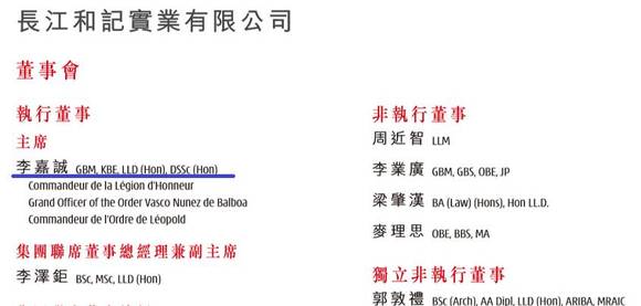 你看李嘉诚头衔后面的那几行洋文,那是法国、比利时以及巴拿马政府授予的荣誉勋衔!