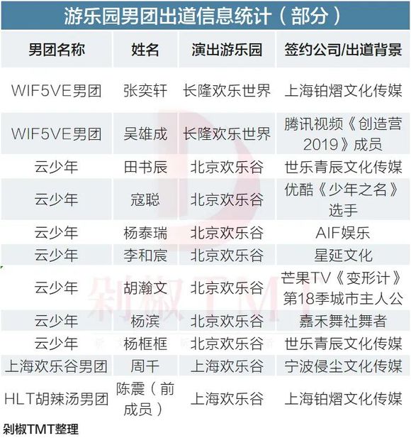 剁主整理了关注度较高的几大游乐园NPC男团,发现不少成员确实有偶像背景。