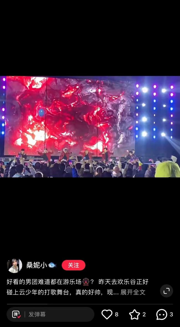虽然云少年只在欢乐谷表演了一首歌,但加菲表示,杨泰瑞的粉丝数据还是有明显提升的,尤其是抖音平台。“抖音用户对这些游乐园帅气的小哥哥关注度还是比较高的。”